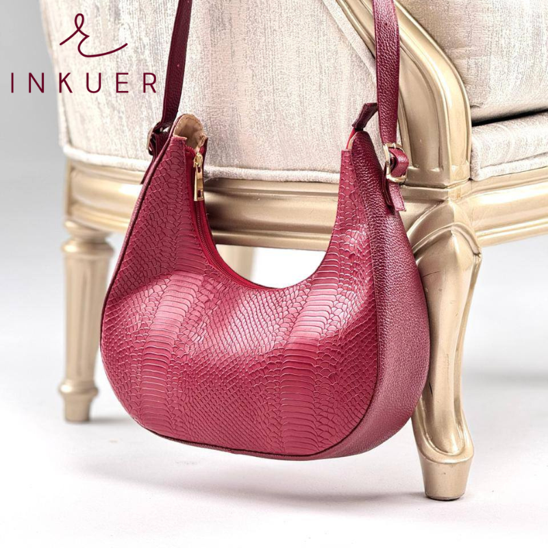 Descubre la sofisticación en cada detalle con nuestro bolso crescent en tono burdeos, una pieza que fusiona elegancia contemporánea con carácter artesanal. Su textura tipo piel de serpiente y herrajes dorados realzan un diseño pensado para mujeres que caminan con estilo y seguridad.